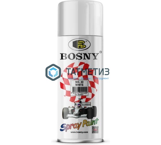 Краска аэроз. BOSNY 520 мл. №040 БЕЛАЯ глянцевая